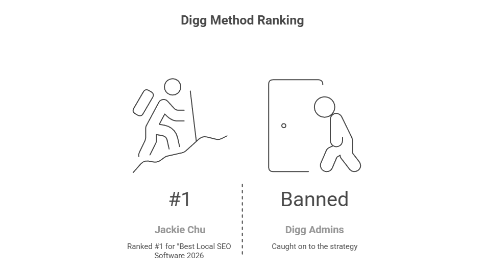 3. Case Study: Ranked #1, Then Got BannedIt's one thing to hear about a strategy. It's another to watch someone execute it live and document what happens. Jackie Chu used the Digg method to rank #1 for "Best Local SEO Software 2026" in record time. Then the admins caught on. This is a masterclass in Parasite SEO—high risk, high reward. What you'll discover: