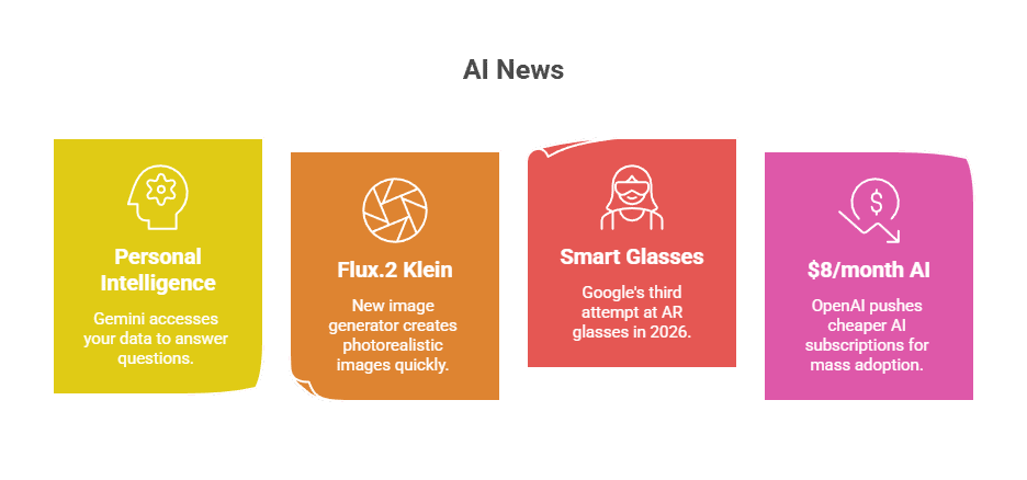13. AI News: Google Knows Everything About YouGoogle's Gemini can now access your Photos, Gmail, and Drive to answer questions based on your personal life. Meanwhile, OpenAI is pushing a cheaper $8/month tier to drive mass adoption, and new image generators are creating photorealistic images in under 0.5 seconds. What's happening: