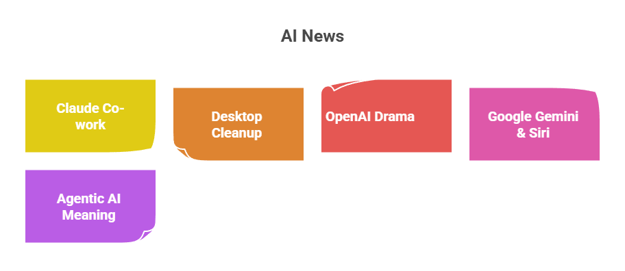Watch the agency blueprint → 15. AI News: Claude Controls Your MouseAnthropic just released "Claude Co-work." It's not just a chatbot anymore—it can access your file system, organize your downloads folder, and execute terminal commands. This is the first real step toward true "Agentic" AI that takes action on your behalf. What's new: